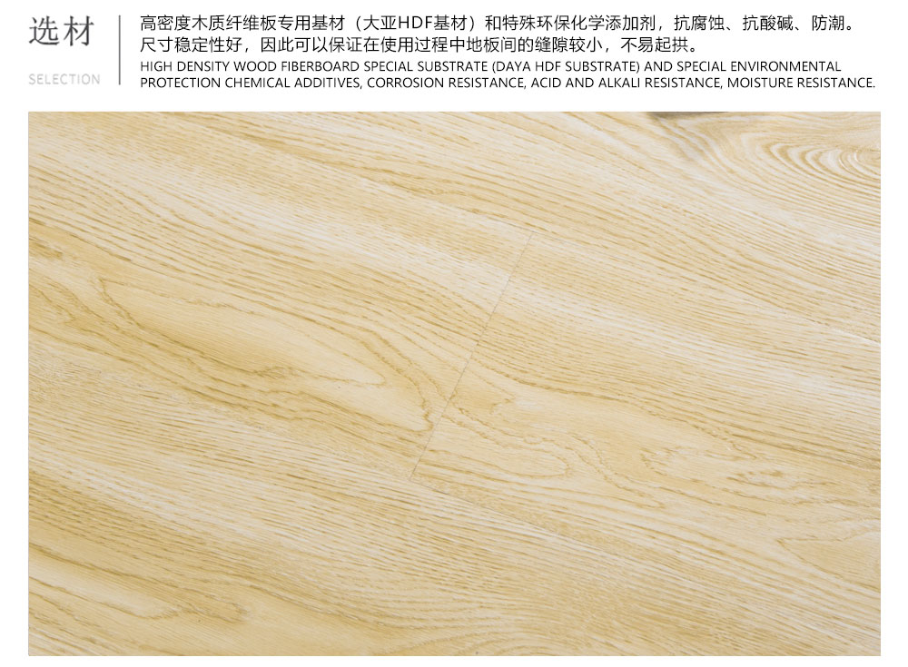 给人以平滑的触感,纹理清晰自然。 再加上超低的光线折射处理,整款地板优雅而内敛,充分展示了德系的理性风采。