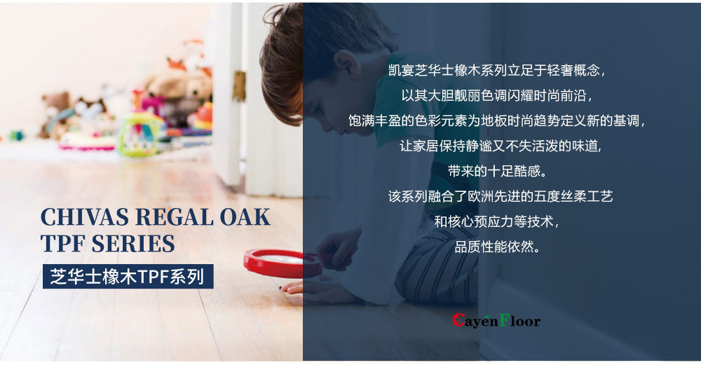 立足于轻奢概念, 以其大胆靓丽色调闪耀时尚前沿, 饱满丰盈的色彩元素为地板时尚趋势定义新的基调。